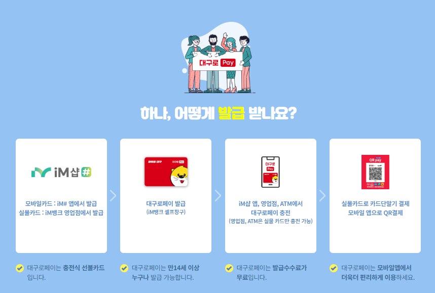 | 발급 장소 | 대구은행 IM뱅크 창구 (대구로 페이 실물카드 발급) |